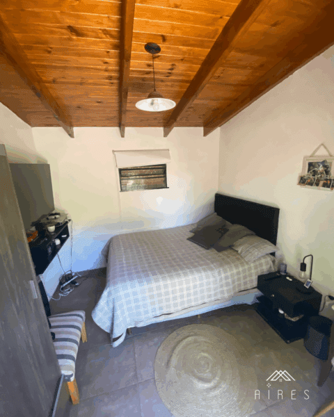 La habitación principal tiene placard y baño privado. En el exterior una habitación con un baño sin ducha completan los espacios de esta casa.